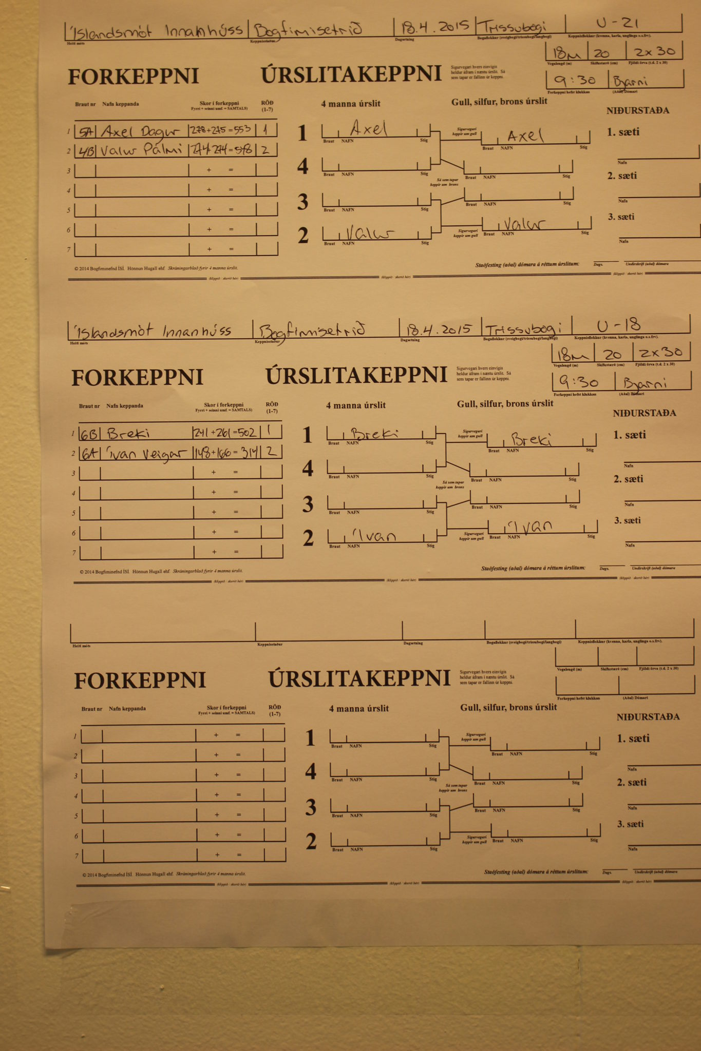 Myndir frá Íslandsmótinu innanhúss 2015 frá official ljósmyndara “World Archery Iceland” (bogfiminefndarinnar) Haraldi Gústafssyni.